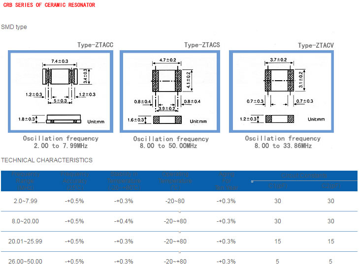 CRA SMD Type Piezoelectric ceramic resonator
